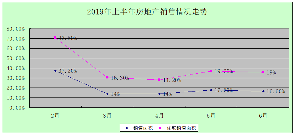 1、商品房销售快速增长。上半年,平顶山市商品房销售面积为126万平方米,同比增长16.6%。其中,商品住宅销售面积为118.3万平方米,增长19%,占商品房销售面积的比重为93.8%;非住宅类商品房销售面积为7.7万平方米,占商品房销售面积的比重为6.1%。受政策面的影响和商家各种清盘促销积叠加是商品房销售出现明显向好的主要原因。2019年以来,由于国家将要陆续出台一系列对房地产有深远意义的政策,并给房地产市场走势带来不确定因素,导致房地产公司加大销售力度。目前销售较为理想的项目主要是近年来新入驻平顶山的大型房地产开发企业,如恒大、碧桂园、中梁、建业等房地产公司,这些外来公司具有资金充足、设计理念新颖、诚信较高、服务到位等明显优势